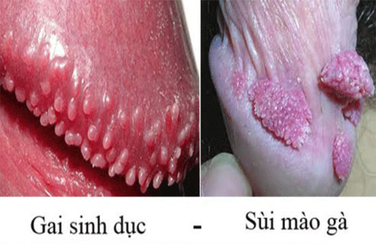 Gai sinh dục chỉ phát triển ở bộ phận sinh dục; sùi mào gà thì có thể phát triển ở cả bộ phận sinh dục, hậu môn, miệng...